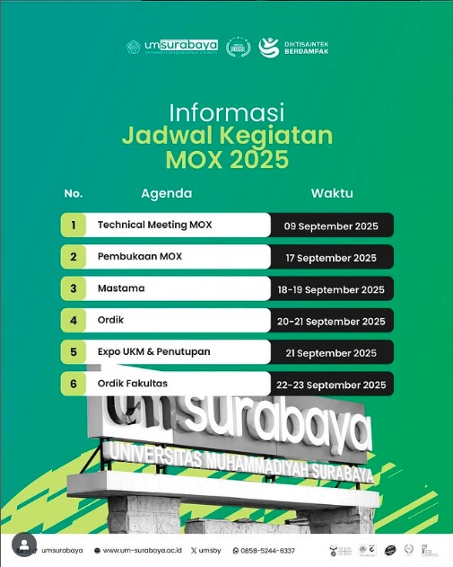 Jadwal Kegiatan Mastama, Ordik dan Expo UKM (MOX) UMSurabaya 2025 | 09 September 2025 - 21 September 2025 | Flyer |