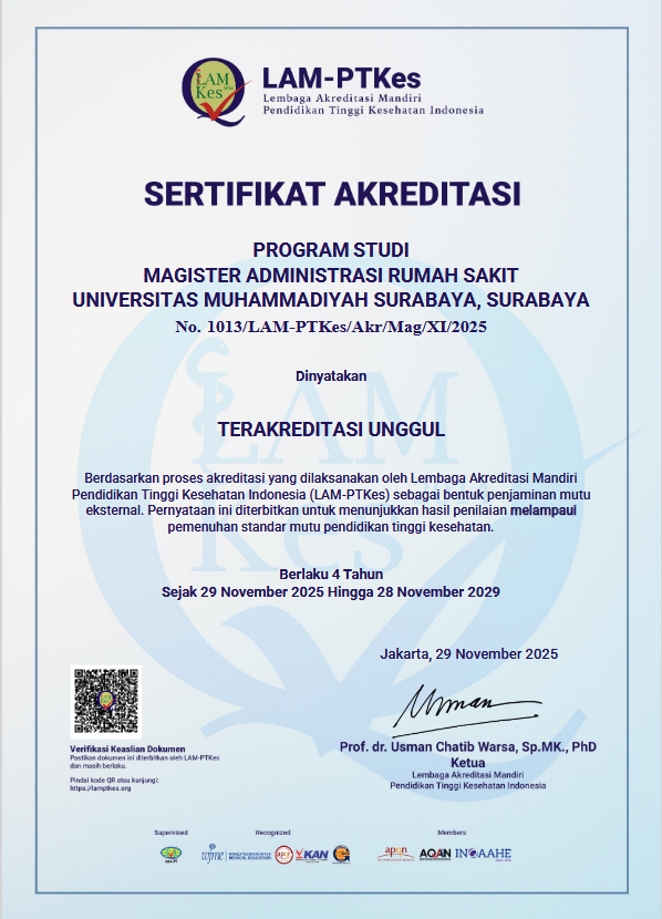 Sertifikat Akreditasi Magister Administrasi Rumah Sakit Fakultas Kedokteran Universitas Muhammadiyah Surabaya